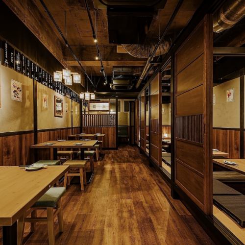 【2/4/6/10名様..個室/半個室完備!!】ごゆっくりお楽しみいただける完全個室をご用意☆大衆感抜群のれん半個室や店内の活気溢れるオープン席もおすすめです♪鹿児島天文館での仕事帰りの一杯や仲間との飲み会、ご宴会などレイアウトを最適にしてご案内いたします!大衆感あふれる落ち着く店内でごゆっくりお寛ぎ下さい!